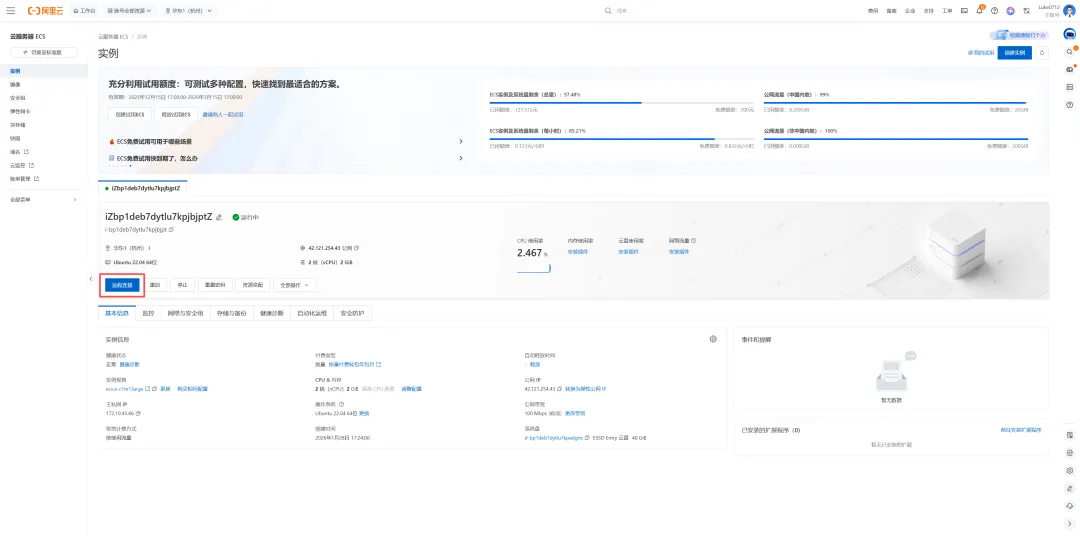 因潜在的安全风险,不建议大家使用主力电脑使用Openclaw本教程从白嫖一个云服务器开始,搭建Openclaw,创建飞书机器人使用Openclaw1、前往阿里云官网进行【免费试用/管理控制台】云服务器ECS - 阿里云