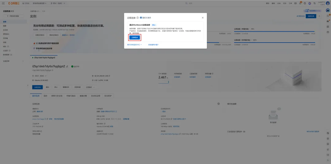 2、点击【创建试用ECS】即可进行服务器的创建