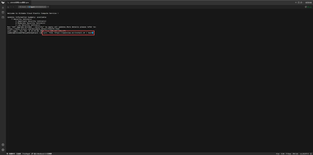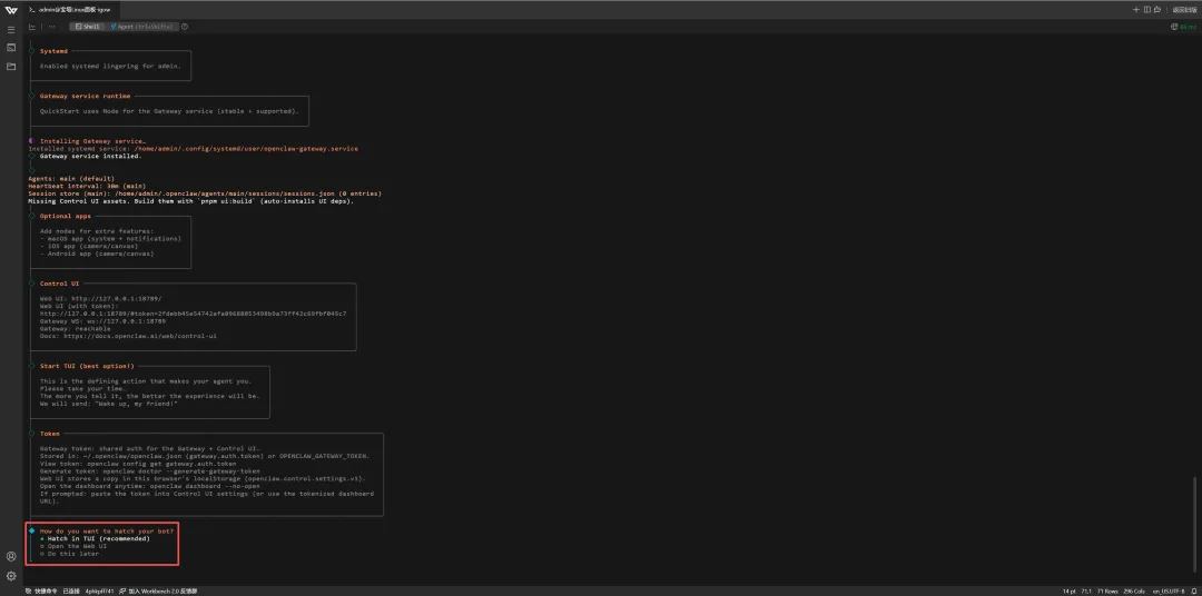 4、若想在Linux界面中唤起Openclaw,可输入以下代码