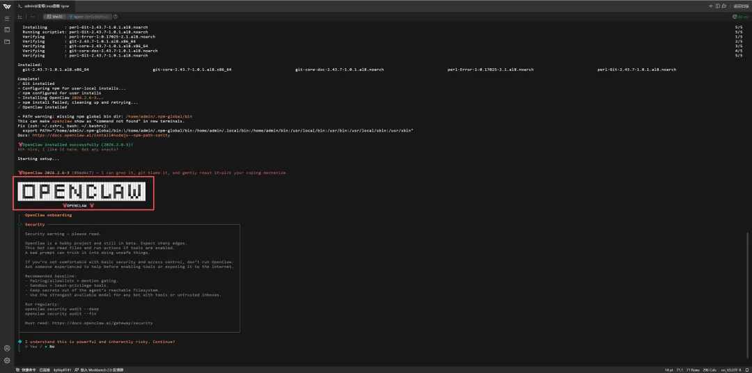 2、耐心等待........(等待至出现OPENCLAW图标,此时进入配置流程