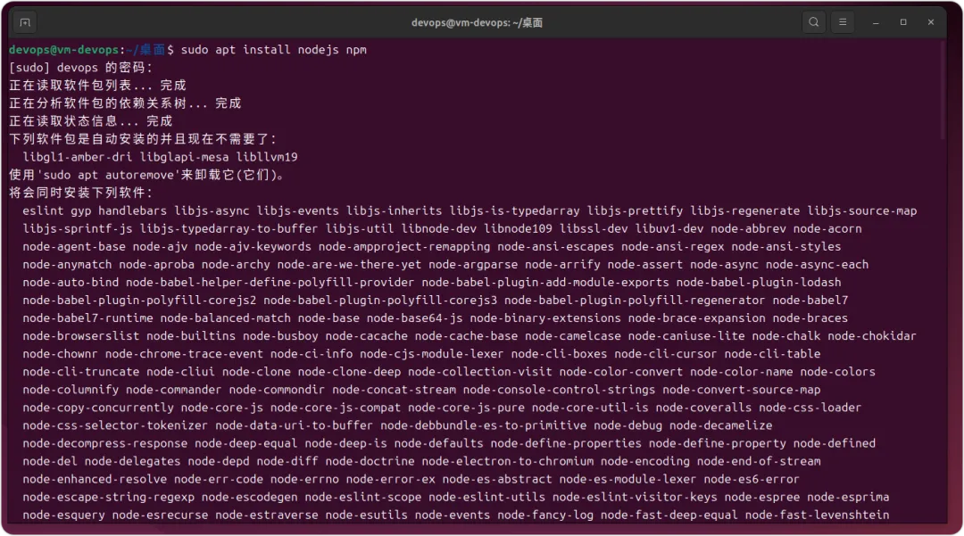 添加仓库后,我们可以使用 APT 软件包管理器安装 Node.js 和 NPM,就像安装其他软件一样。第 3 步:验证安装