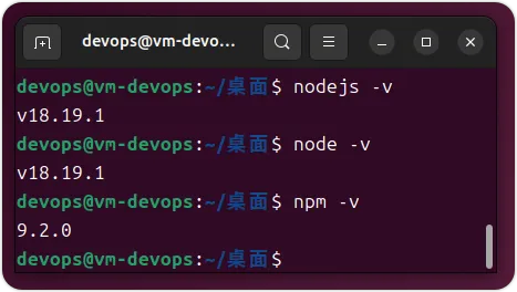 完成上一步的命令后,让我们通过验证它们的版本来确认 Node 和 NPM 已安装在我们的系统上。如果命令 Nodejs 返回了版本号,但 “node” 没有返回,则创建一个符号链接:sudo ln -s /usr/bin/nodejs /usr/bin/node
