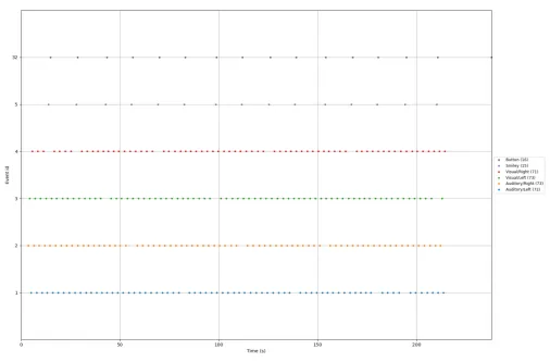 图五:MNE-Python在时间轴上画出的所有事件