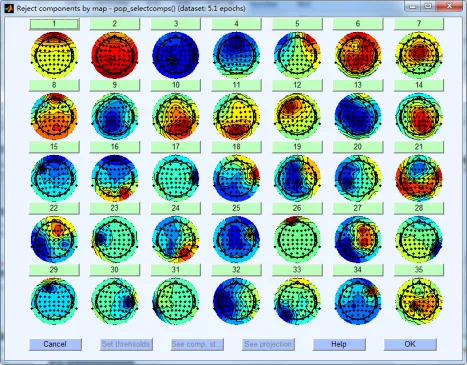 图六:ICA独立成分空间分布示例:EEGLAB(上)和MNE-Python(下)绘制的成分拓扑图