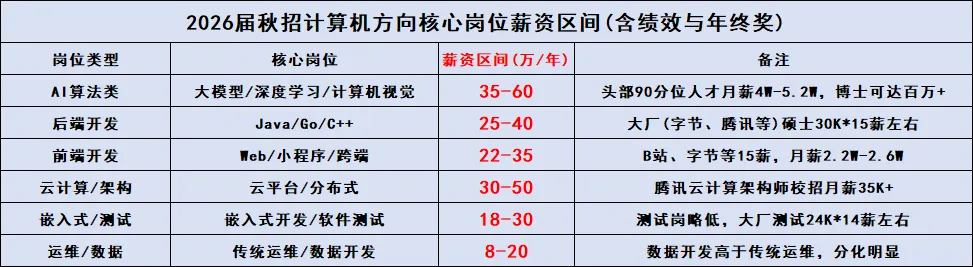 春节过去了,程序员群体已悄然迎来新一轮职业挑战——在行业普遍降本增效的背景下,如何通过技术深耕实现个人价值跃升。这场关乎职业发展的"硬仗",正从春节后的金三银四悄然打响。在DeepSeek等大模型技术的持续爆发下,生成式AI和大模型技术呈现爆发式增长,算法工程师又迎来新的“黄金爆发期”。2026届校招数据显示,大模型算法工程师月薪中位数已逼近3万元,顶尖人才的年薪破百万,远超前后端、运维、嵌入式等传统技术岗位,成为程序员群体中的“薪资天花板”。AI的快速发展也给很多程序员带来更多的机会,很多公司都投入了巨量资源,把人工智能作为下一阶段的主要发展方向,字节,腾讯,京东等大厂增加了很多AI部门,扩招大量的大模型和算法人才。所以在大模型、生成式AI这些领域,各家公司都给足了诚意,像DeepSeek最近热招的大模型全栈工程师等AI核心岗位更是开出了11W*14薪的天价薪资,年薪高达154万,甚至很多岗位薪资比往年提高40%,给广大程序员带来更高的年龄容忍度。而对于正在求职,转型的各位同学来说,现在也是最适合拿下AI大模型的红利期。但是当下求职者的综合能力,尚不足以满足很多企业核心AI岗位的用人标准,关键在于如何拿到这样的高薪,或者是需要具备什么样的技术、能力才能拿到高薪呢?为了解决以上问题,我们打造了一个《AI算法工程师培养计划》,它是由国内一线大厂在职的算法leader亲自主讲,不仅广度上满足大厂的应聘要求,深度上也是符合大厂的用人需求,学完之后和算法岗的需求贴合度至少能达到98%以上。确保你学习完以后,能够具备在实际工作当中解决实际问题的能力,成为一名合格的AI算法工程师。并且该计划承诺在校应届生就业薪资拿不到29W、在职人员最低薪资涨幅低于40%-50%,均可以全额退款。目前已经有上千位同学通过该计划拿到offer了,平均薪资达到35w+,最新一期学员就业薪资最高能拿到85K!为了学生能够学习到真正在企业拿来即用的技术,我们高薪聘请20位一线大厂顶级专家成立教研团队,历时两年时间,打磨出超精品的AI课程,帮助学员掌握基础理论以及实战项目,满足行业内绝大多数岗位需求,打造行业内TOP级算法工程师人才!
