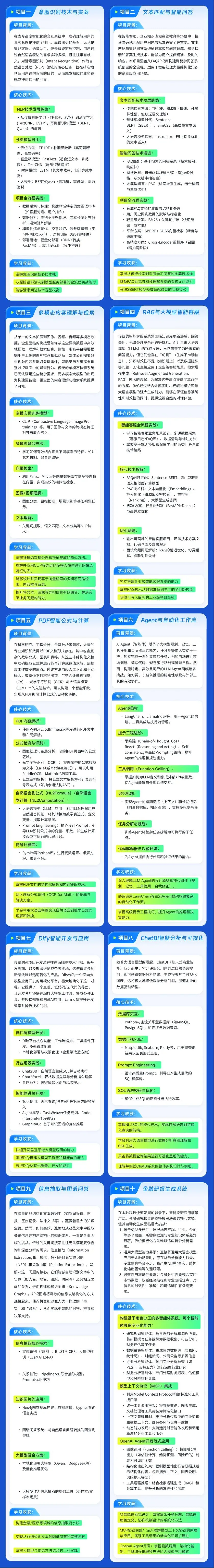 课程重点围绕主流热门行业商业项目实战展开,在十大企业级项目中,把理论和实践相结合,帮助学员用最短的时间进入AI领域并掌握相关知识,快速上手主流深度学习开发框架,具备人工智能工业项目动手能力。以上项目是一套通用的解决方案,可以从中整理出面向不同业务的相似实现,适合大型互联网、自动驾驶、工业缺陷检测、文本生成、语言模型、医疗、农业等等不同的应用场景,在整个授课过程中,老师更加注重是业务与思想的传播,让你轻松应对工作中的问题并且有举一反三的能力。由于篇幅有限,就不在这里赘述,如果想进一步了解,定制属于自己的提升计划。·我们郑重承诺:所有保障条款白纸黑字写入协议,双方签字盖章,具备完全法律效力!不搞任何文字套路,不玩半点模糊猫腻!先免费咨询、免费了解,合适再学,不合适也绝不纠缠!多懂一门AI新技能,多踩准一个行业新赛道,下一个靠技术逆袭上岸的,说不定就是你!本培养计划上一期的学员就业情况部分展示,已经有90%的同学拿到了国内外名企的AI、算法岗位offer。最新一期就业学员最高薪资月薪在75K!往期部分学员就业情况分享,温馨提醒,我们所有的学员就业情况全部真实可核实:为保护学员个人隐私,隐去学员姓名。以下仅部分学员就业信息,如果想了解更多就业信息可以联系我。【1】周同学是化学专业出身,厌倦了化工行业,一心渴望转型进入计算机领域。尽管毫无基础,但他还是坚定报名学习,深根 2 期,克服学习难题,逐步夯实了专业技能。功夫不负有心人,他最终成功拿下月薪23k的算法offer。从跨行业小白逆袭为高薪技术人才。所以,时间不会辜负努力,选对方向就能突破职场壁垒。【2】郑同学是一名应届生,他的目标很明确——冲刺大厂算法岗。他跟着宋老师的课程有条不紊地准备,吃透了 Transformer、Attention 等核心考点,提前攻克了面试高频问题,为秋招做好了万全准备。他最终拿下10+个offer,字节、美团等大厂纷纷向他抛出橄榄枝,年薪高达 60~70 万。从认真备考到横扫大厂 offer,郑同学用行动证明了自己的实力。【3】双非普本应届生吴同学,很早便认准 AI 是突破职场天花板的关键。他没有因学历而感到自卑,反而主动报名课程来提升技能。经过 4 个多月的刻苦学习,凭借我们提供的简历优化及内推资源,他顺利收获3个大厂offer,最高年薪 48 万。从担心发展受限到成为大厂 “香饽饽”,这就是选对赛道 + 专业助力的成效。【4】大专背景的李同学不拼学历拼实力,也打破了学历的限制。刚开始自学 AI 时,他因“缺乏项目经验、没有内推渠道”而陷入瓶颈,始终没有成效,于是选择接受系统化的培训。通过我们的定制化学习服务加持——从预习指导、实战跟进,到老师亲手优化简历、直通企业内推。他很快便拿下了首份年薪30万的高薪offer,实现了真正的逆袭。【5】40岁的吴同学也顺利转型算法应用岗,打破职场的年龄焦虑。他作为项目经理,前后咨询 2 次课程,观望 1年才下定决心加入学习。依托我们的大厂名师指导、项目实战训练,再加上5次简历精改与2次模拟面试助力,他仅用3个月就拿下32K算法应用offer。从面临失业到成功转型逆袭,可见年龄从来不是技术赛道的阻碍。往期学员通过我们的内推,入职都特别高效,内推很多都是大厂,只有帮助大家学习到技术,找到一份好工作,我们才能收获好的口碑口碑对于一家教育公司是非常重要的,所以我们也非常注重结果,对结果负责。加油!!课程结束后若没有达到以上承诺,即退还全部学费,且保留赠送的所有资源,不会让你吃亏!
