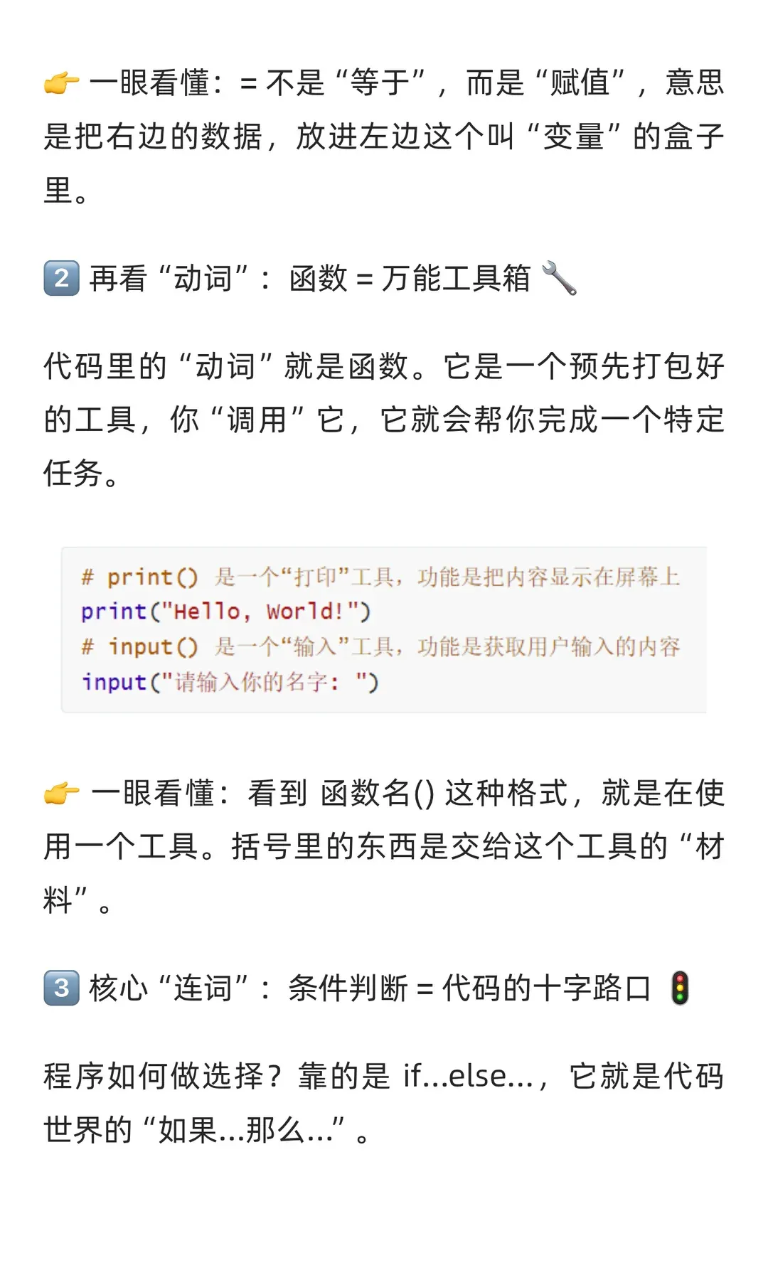 新手学python看到满屏的英文和符号就头大 完全不用担心!掌握这几个核心 “语法”,复杂的代码都简单化了