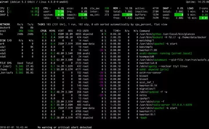 glances:更强大的 htop / top 代替者。