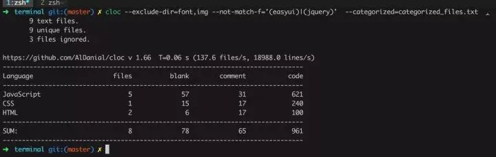 cloc:代码统计工具,能够统计代码的空行数、注释行、编程语言。