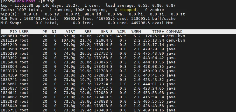 pmap -X 28408 |sort -k7h |awk '{sum+=$7} END {print "第七列求和结果:", sum/1024/1024}'第七列求和结果: 33.7364pmap -X 28408 |sort -k7h |awk '{sum+=$6} END {print "第六列求和结果:", sum/1024/1024}'第六列求和结果: 49.6317pmap -X 28408 |sort -k7h |grep jar |awk '{sum+=$6} END {print "jar求和结果:", sum/1024/1024}'jar求和结果: 0.134808 PID USER PR NI VIRT RES SHR COMMAND28408 root 20049.6g 33.7g 153576 javatop是可以这样对应起来的.