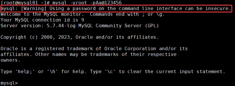 比如在连接mysql时,在命令行中写入了密码,就会有告警提示: