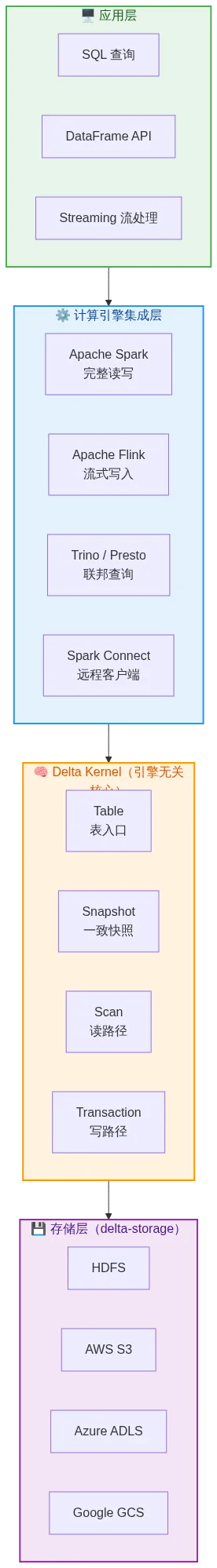 Delta 4.0 最大的架构变革是 Delta Kernel——一个纯 Java 的、引擎无关的核心库。