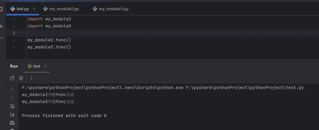 import my_module2import my_module3my_module2.func()my_module3.func()