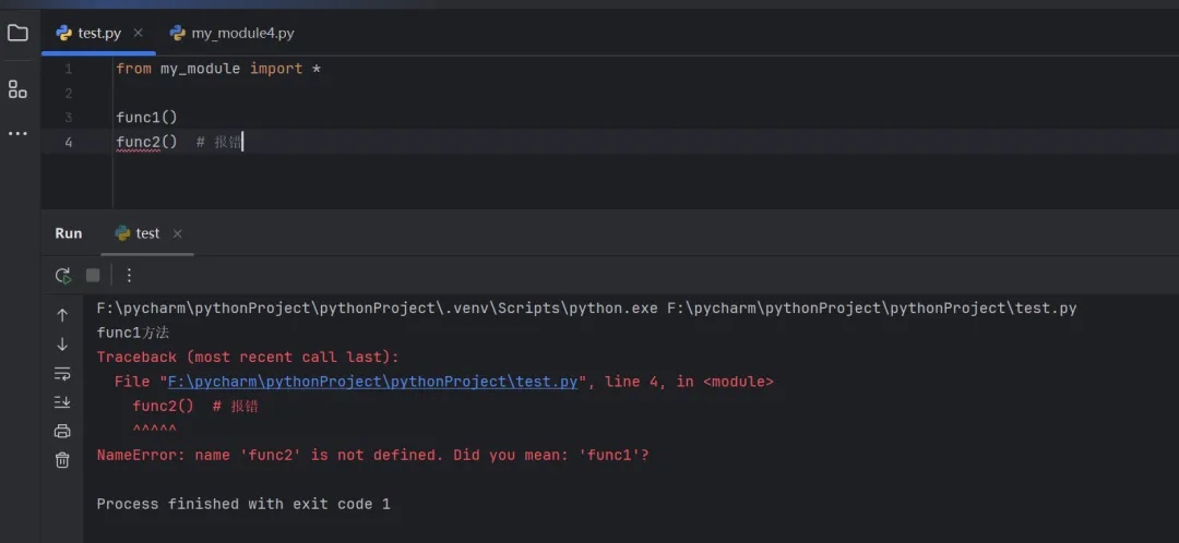 from my_module import *func1()func2() # 报错