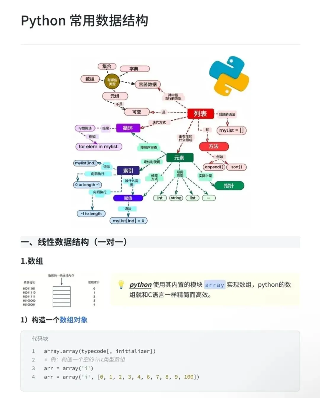 这里给大家总结了python中最常用的数据结构,容器数据类型及其之间的关系。
