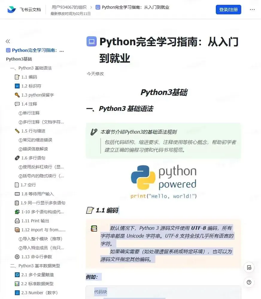 飞书的文档功能支持多人实时协作编辑,这对于学习Python而言极为有利。学习者可以与同学或同事共同创建Python学习文档,在文档中实时记录代码示例、学习心得、遇到的难题及解决方案等。例如,在学习Python的数据分析模块时,大家可以分工合作,分别整理不同函数的使用方法和案例,然后汇总到同一文档中。这种实时共享与编辑的方式,不仅节省了时间,还能让每个人从不同的视角获取知识,拓宽学习思路。