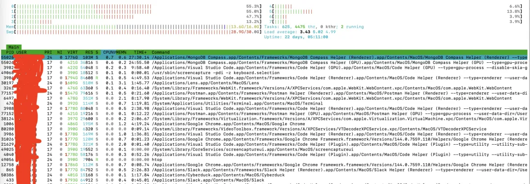 htop:提供色彩丰富的图形界面,更易于阅读和理解。