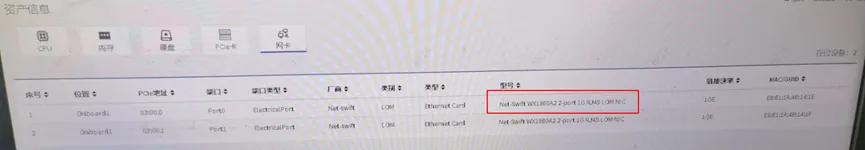 不能直接的看出是什么型号的网卡,但是可以确定服务器是识别到了网卡的。