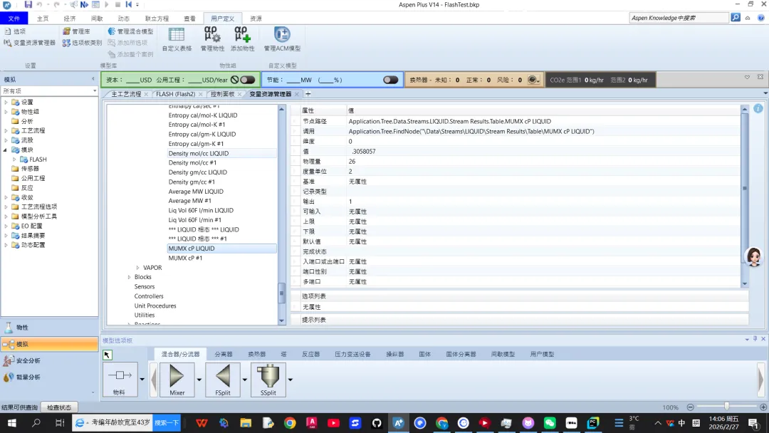 这里会有问题,因为正常情况下如果获取输出结果会报错node9=aspen.Tree.FindNode("\Data\Streams\LIQUID\Stream Results\Table\MUMX cP LIQUID")