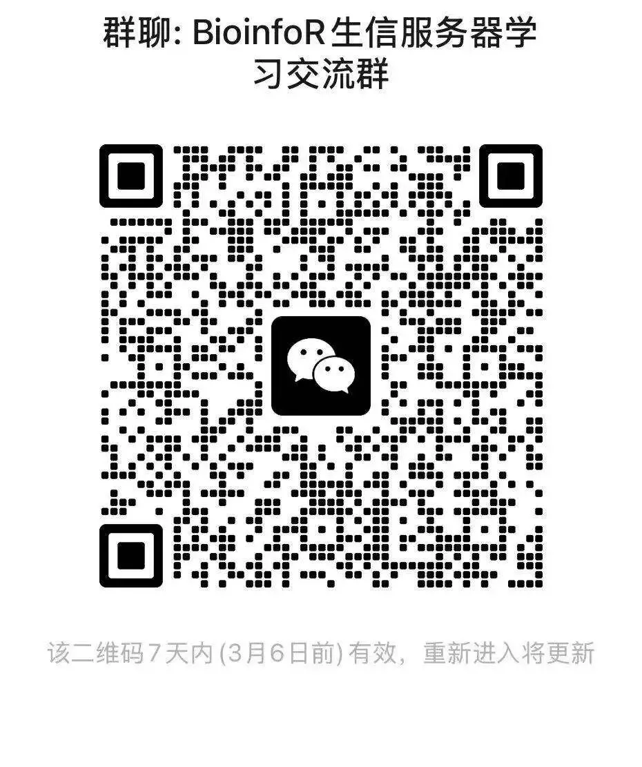 若是二维码失效,可添加我们微信,详情点击添加BioinfoR联系方式,备注“进服务器交流群”。