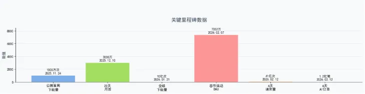 - • 2月7日:千问DAU(日活跃用户)飙升至7352万