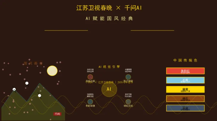 江苏卫视春晚用AI赋能的国风经典,带来视觉盛宴,千问作为独家冠名方深度参与节目内容创作。