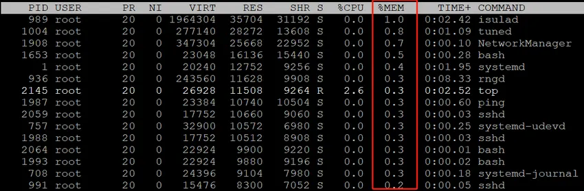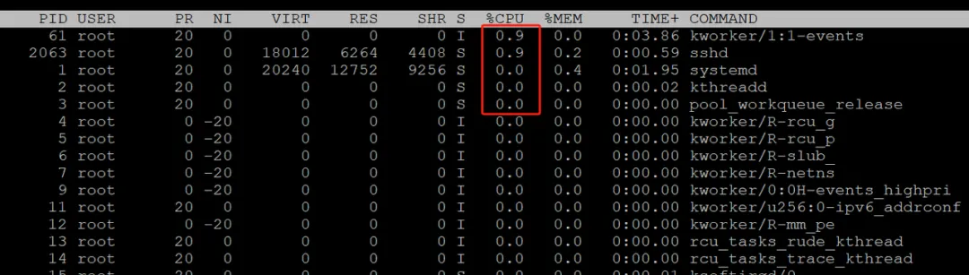 PID USER PR NI VIRT RES SHR S %CPU %MEM TIME+ COMMAND