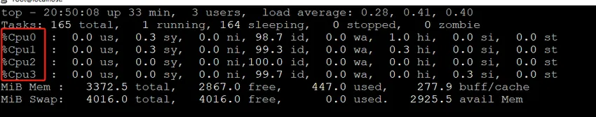 top- 20:33:01up 16 min, 3 users, loadaverage: 0.00, 0.12, 0.16