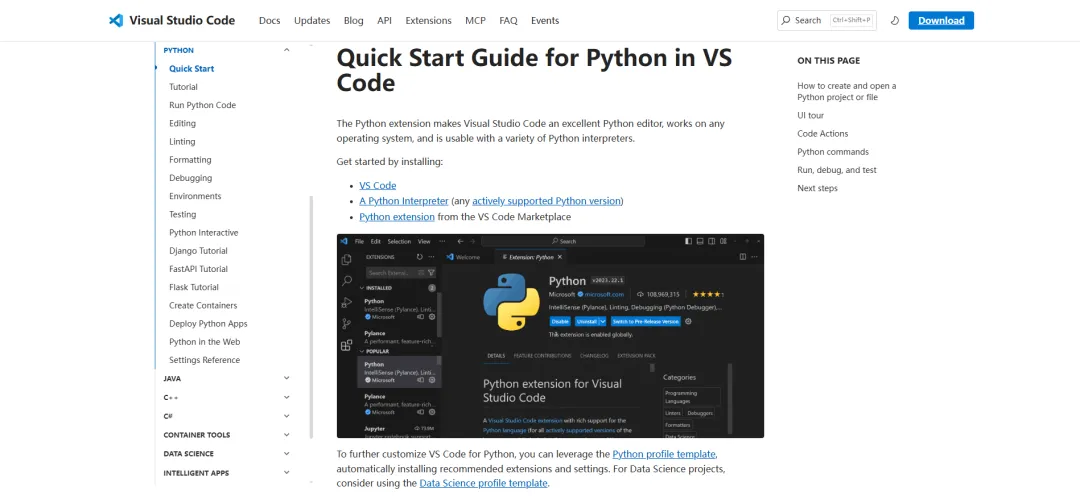 另外官网也有Python、Django、FastAPI、Flask等环境配置介绍: