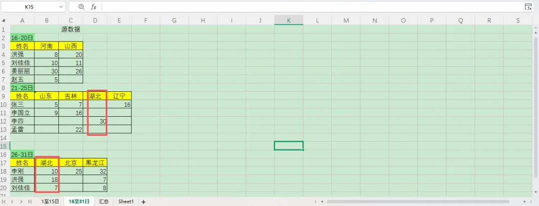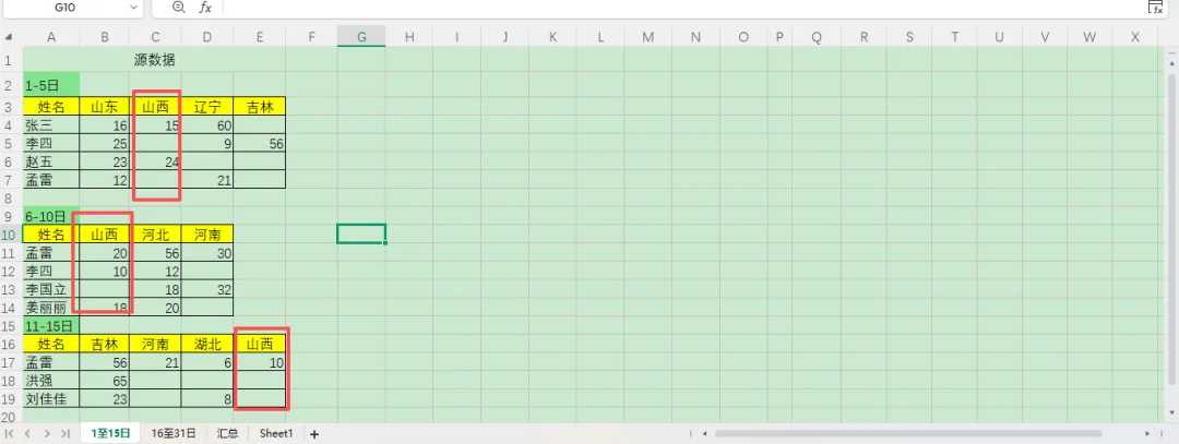 看到一个网友发的问题,要对一个不规则的销售表进行统计,如下图:表格有两个日期的统计表,姓名都在A列,但省份都不在同一列;