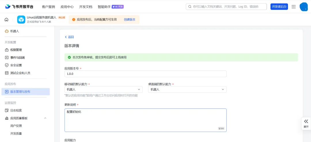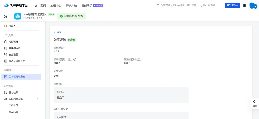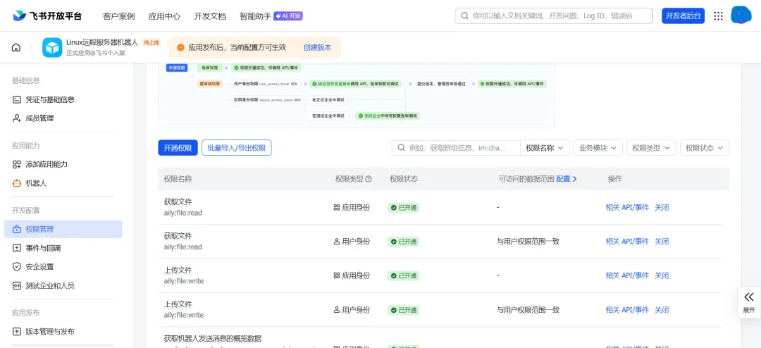 { "scopes": { "tenant": [ "aily:file:read", "aily:file:write", "application:application.app_message_stats.overview:readonly", "application:application:self_manage", "application:bot.menu:write", "cardkit:card:write", "contact:contact.base:readonly", "contact:user.employee_id:readonly", "corehr:file:download", "event:ip_list", "im:chat.access_event.bot_p2p_chat:read", "im:chat.members:bot_access", "im:message", "im:message.group_at_msg:readonly", "im:message.p2p_msg:readonly", "im:message:readonly", "im:message:send_as_bot", "im:resource" ], "user": [ "aily:file:read", "aily:file:write", "contact:contact.base:readonly", "im:chat.access_event.bot_p2p_chat:read", "im:message" ] }}