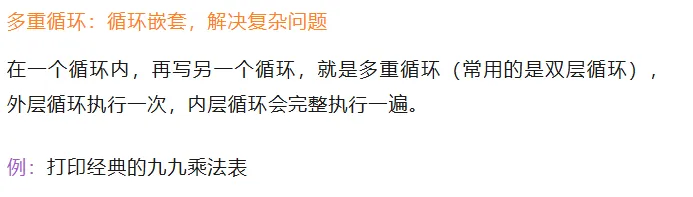 i = 1 i表示行数,从1开始while i <= 9: 外层循环:控制行数,一共9行 j = 1 # j表示列数,每一行都从1开始 while j <= 9and j <= i: # 内层循环:控制列数,列数不超过行数 print(i, '', j, '=', ij, end=' ') # 按格式输出,结尾加3个空格 j += 1 # 列数自增1 print() # 内层循环结束后,输出空行,实现换行 i += 1 # 行数自增1