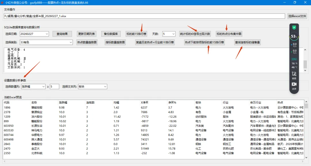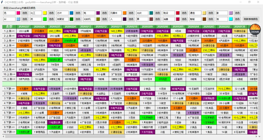 相比去年开始开发的初级版本到5.0(主要对热点+申万方向研究),现在回顾过来还是有很大进步的,横向+纵向分析。今年Python6.66版本对复盘数据研究的更细致,增加了对热点+申万行业+tdx板块+行业方向下的强势标的研究,为此过年期间,重新优化了Python源码的大部分重构。主要优化以下内容,能把我的想法思路用程序代码形式显示出来,使分析或跟踪变的更专业(直观,精简,省事),这几年研究Python编程,深感数据分析确实很厉害的。