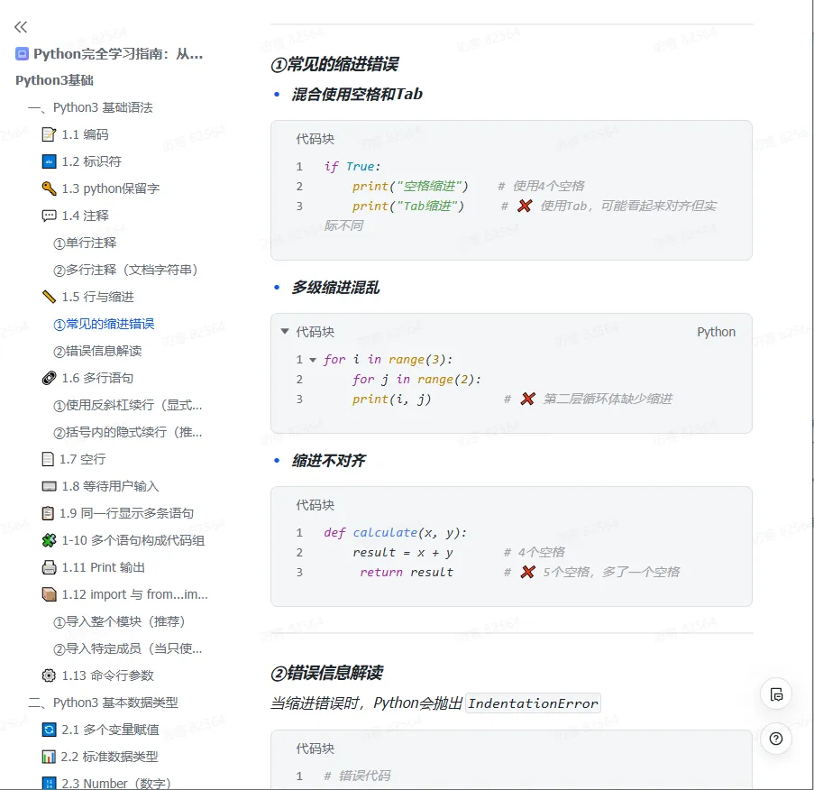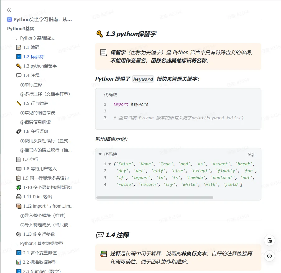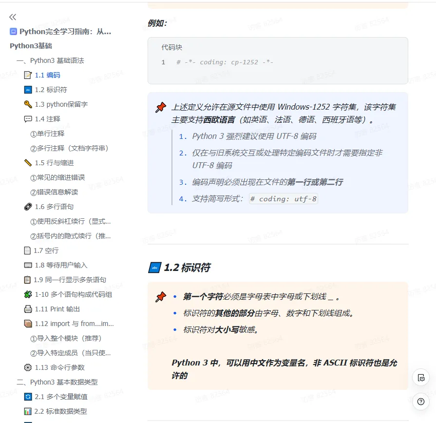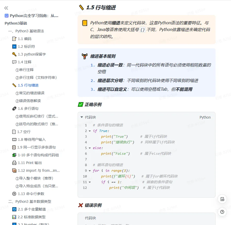这个网站主打一个“自用+分享”,内容全是Python基础干货,没有任何废话。