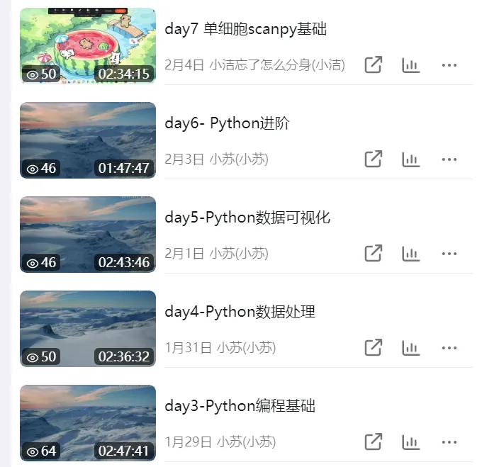 目前的进展是跟完了python基础部分,具体的单细胞分析内容也就差三节课啦!