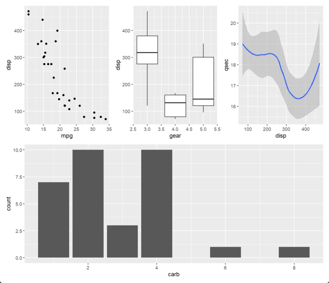 在使用之前,先加载包并创建几个基础图表(以 mtcars 数据集为例):