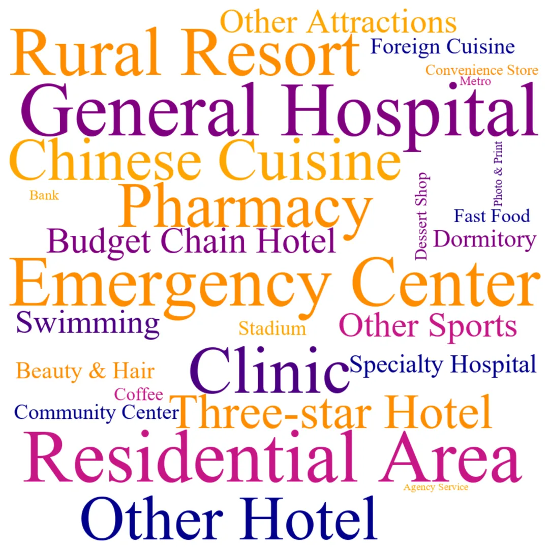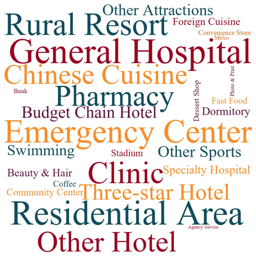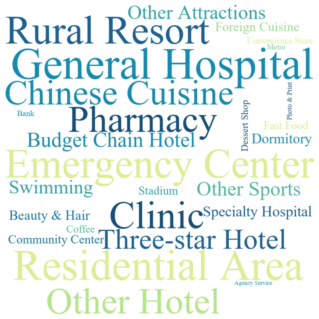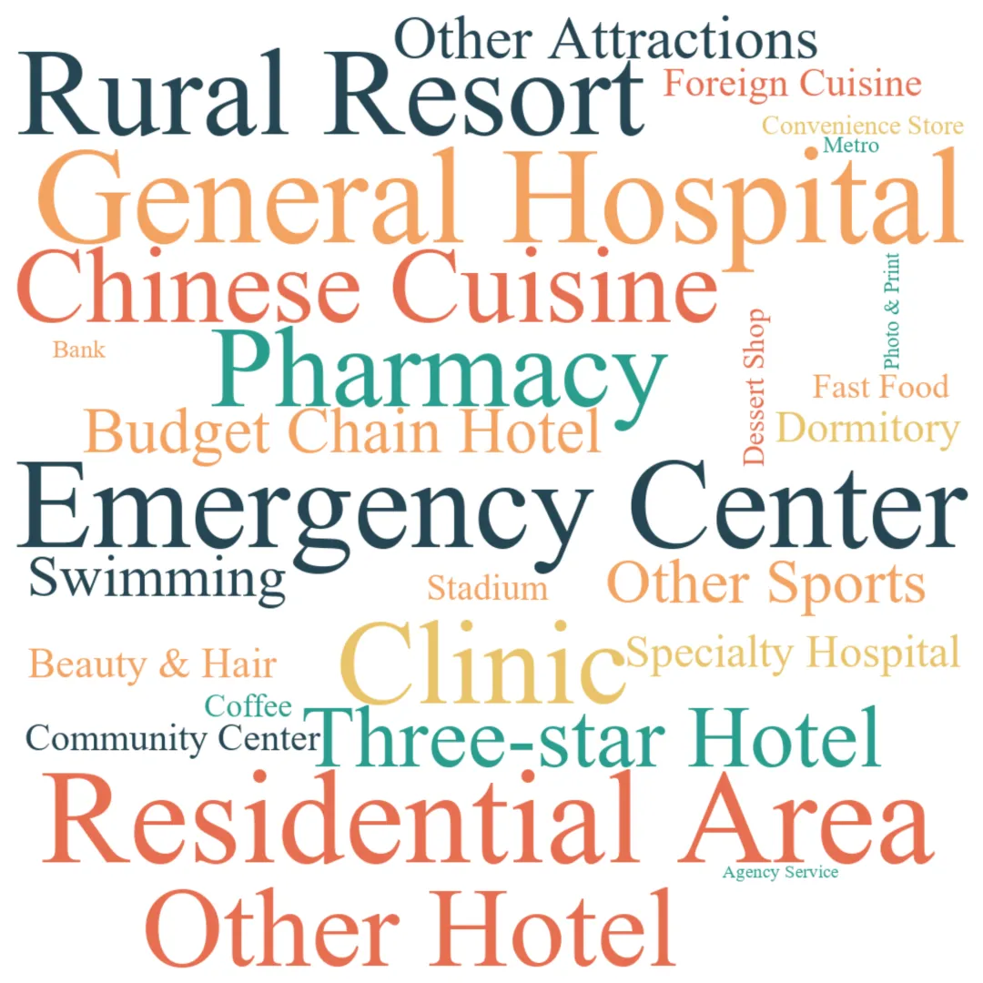 # =========================================================================================# ======================================5.执行部分======================================# =========================================================================================if __name__ == "__main__":df = pd.read_excel(r"data.xlsx") #读取数据frequencies = dict(zip(df['POI_Type'], df['Count'])) #提取数据打包后转换为词频字典#调用绘图函数plot_and_save_wordcloud(frequencies, "Local_Data_Cloud",SHAPE_KEY)