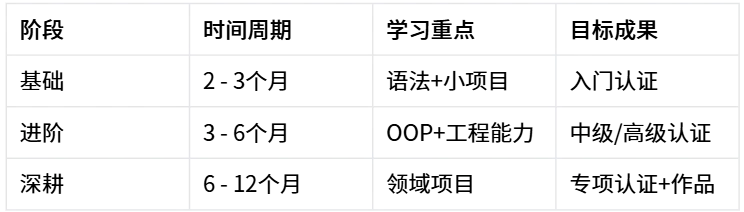 Python学习并非一蹴而就,而是一个由“语法理解”到“工程实践”,再到“领域专业化”的持续升级过程。
