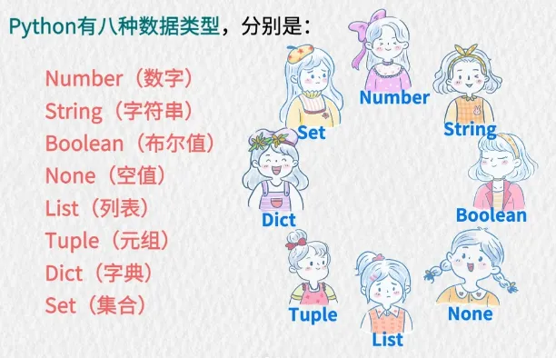 对于刚入门 Python 的新手来说,“数据类型” 是绕不开的第一个核心概念。它就像整理房间的收纳盒,不同的物品要放进对应的盒子里,才能让后续的整理、使用变得井井有条。Python 的 8 种数据类型,还被网友趣称为 “Python 八仙女”,每种类型都有专属的 “身份标识” 和 “使用规则”。今天,我们就用最接地气的方式,带零基础的你彻底搞懂它们!1、什么是数据类型 📚