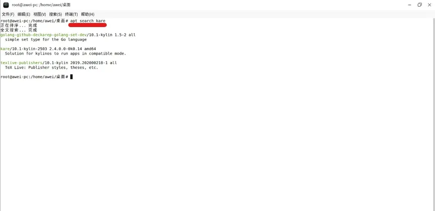#apt search kare#注意在源里面 这个apprunenv叫kare也正好和安装包名字一样,下载安装