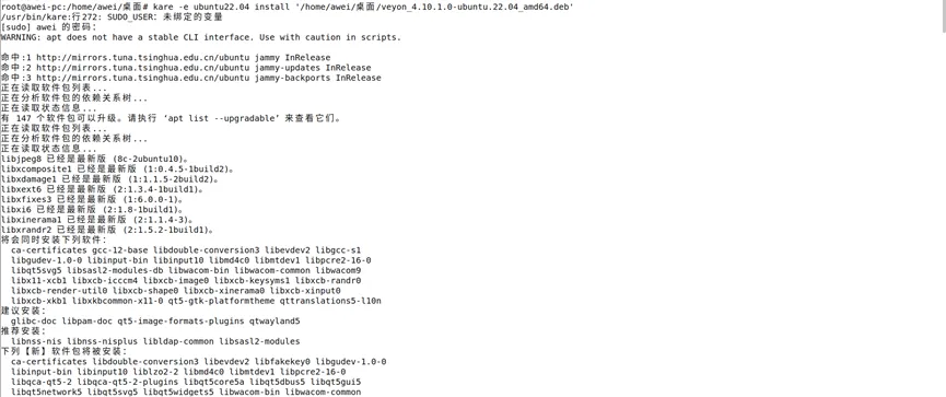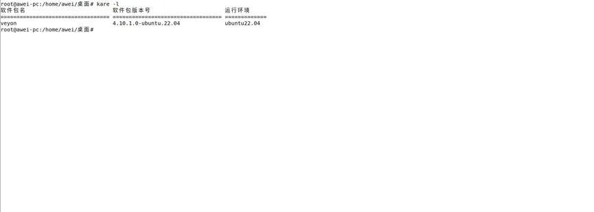 可以kare -l 查看软件版本 的确是ubuntu22.04的环境kare弥补了veyon 没有麒麟系统环境运行的问题!