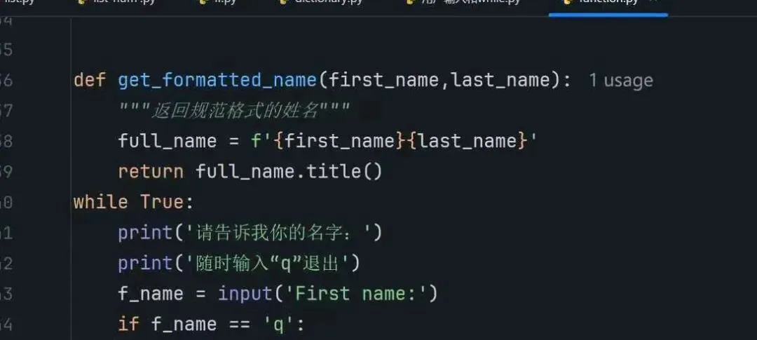 3.调用title()方法:title()的作用对英文姓名有效,对中文无影响,这里保留title()写法是为了兼容英文的输入。