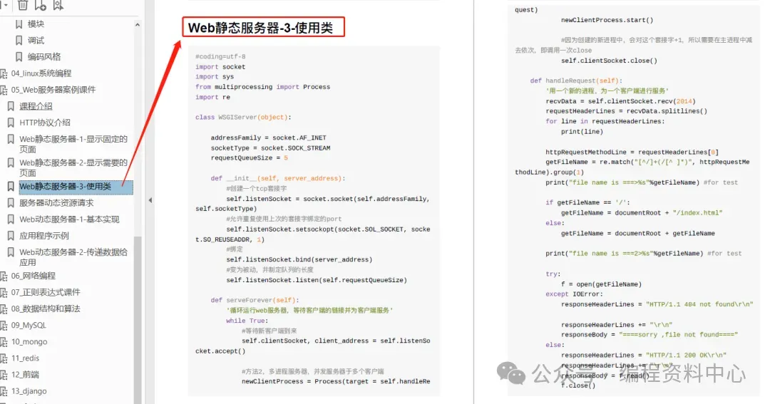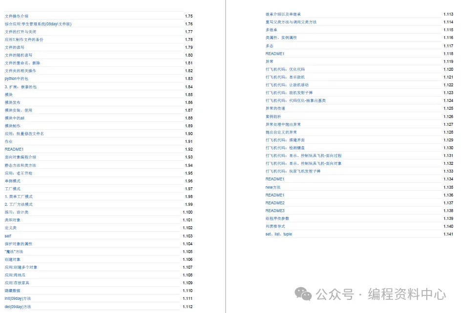 这份文档涵盖基础知识,Linux基础、Python高级知识、linux系统编程、web服务器、网络编程、正则表达式详解、数据结构与算法、MySQL、mango、redis、前端、django、爬虫、tornado、shell等。。。内容非常全面,知识点众多。一本在手,Python不愁!切忌贪多食用,先选择自己的学习方向配合案例学练结合。