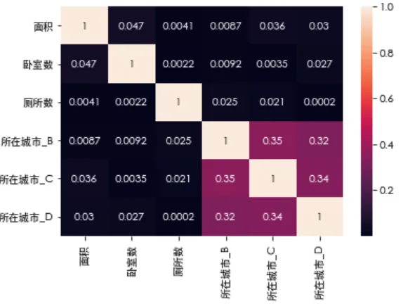 # 计算相关系数(绝对值)X = data.drop('价格', axis=1)X.corr().abs()