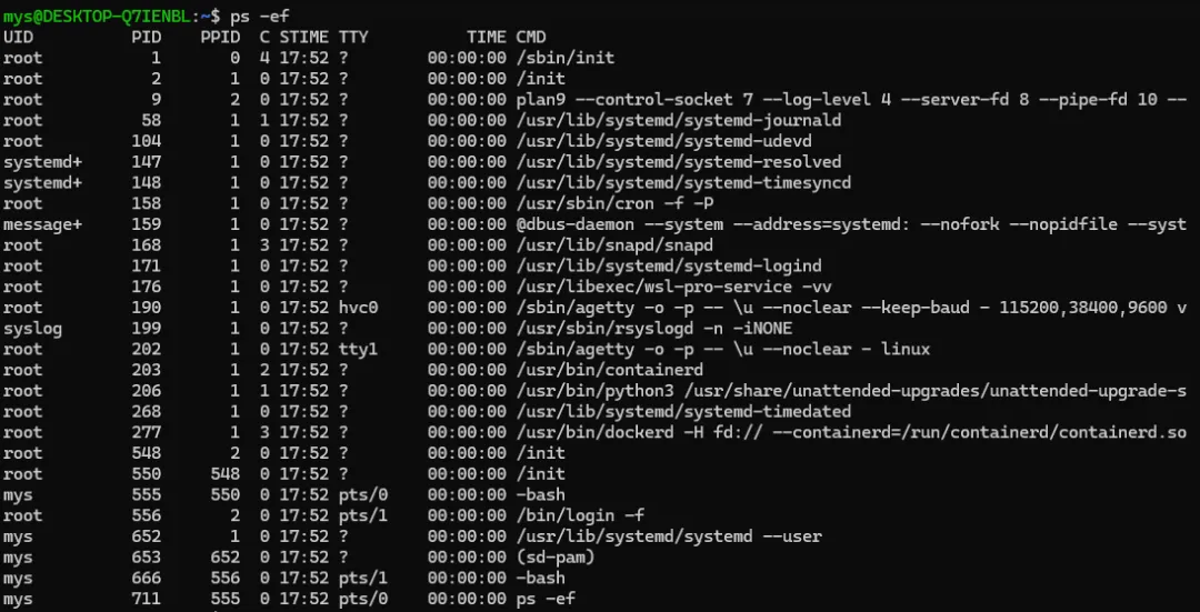为什么看不到某些进程?可能权限不足,尝试使用 sudo ps -ef。