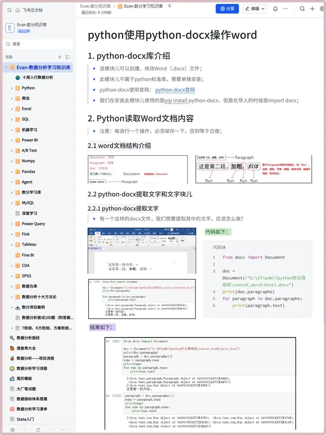 我为大家整理了一个 Python 自动化办公学习知识库,每一步都配有运行效果图,图文结合更容易上手,即使零基础也能轻松看懂。