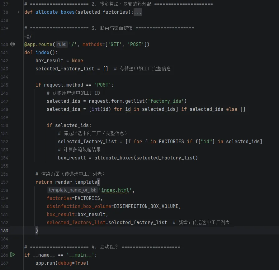 l算法优化:当前用笛卡尔积遍历所有组合,工厂数量多时计算较慢,可替换为「动态规划算法」(适合背包问题,效率更高);