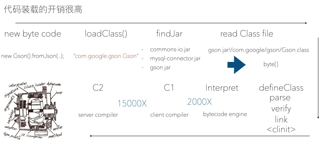 图片来源:周志明(就是写《深入理解Java虚拟机》的大牛)的文章:云原生时代,Java 的危与机[43]截至今天,最新的Java 18中仅包含了Project Amber和Project Portola的一些特性,像Project Loom、Project Valhalla等并没有包含,更别提难度最大的Project Leyden了,确实是有点落后了。不管如何,了解下这些项目做的事情可以让我们更好地理解Java未来的发展方向。我们一直说Java速度慢,我觉得这是一个不严谨的误会,因为实际上经过JIT编译后Java运行并不慢。为什么Java给人“更慢”的印象?可能这两方面因素是罪魁祸首:Java是一门跨平台语言,但JVM并不是跨平台的,Java将源码编译成字节码,交给JVM执行,这中间装载的开销很高。
