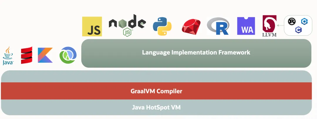 Truffle - 即下图中的语言实现框架(Language Implementation Framework),用来支持多种语言跑在GraalVM上。