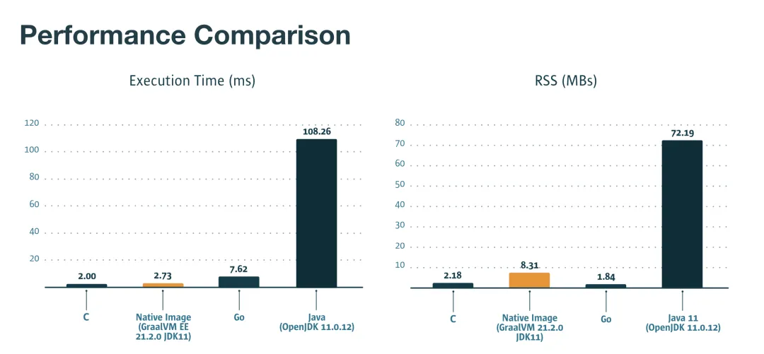 官网放了一张图来展示Graal Native Image的两大优势:快速启动和低内存占用。不过我看到的其他一些资料上说在低时延和高吞吐(Latency/Throughput)场景下并不占优。